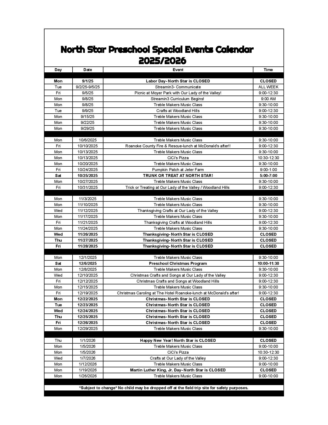 Welcome to North Star Child Care!